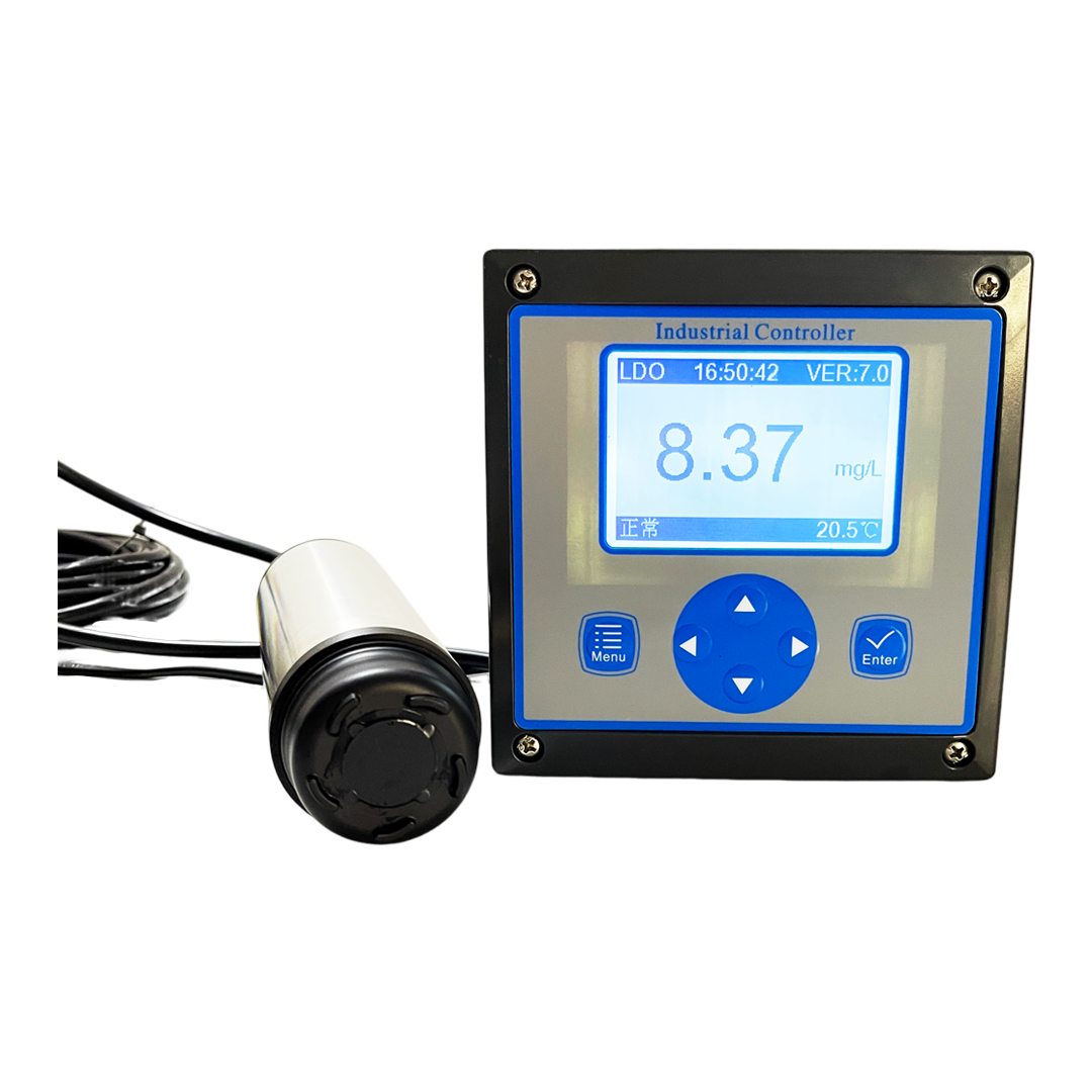 在線熒光法溶解氧儀是基于物理學(xué)中特定物質(zhì)對激發(fā)熒光的猝熄原理設(shè)計制作而成。LDO的探頭最前端的傳感器罩上覆蓋著一層特殊的物質(zhì),傳感器的內(nèi)部發(fā)出特定的光照射到傳感器罩上覆蓋著的一層特殊的物質(zhì)上,特殊物質(zhì)受到激發(fā)發(fā)出光,通過光電池檢測激發(fā)光回到基態(tài)所需的時間,該時間與溶解氧存在著特定的關(guān)系,從而計算出氧分子的濃度,經(jīng)過溫度自動補償輸出最終值。熒光法測定溶解氧是測量技術(shù)的一次革命性的突破